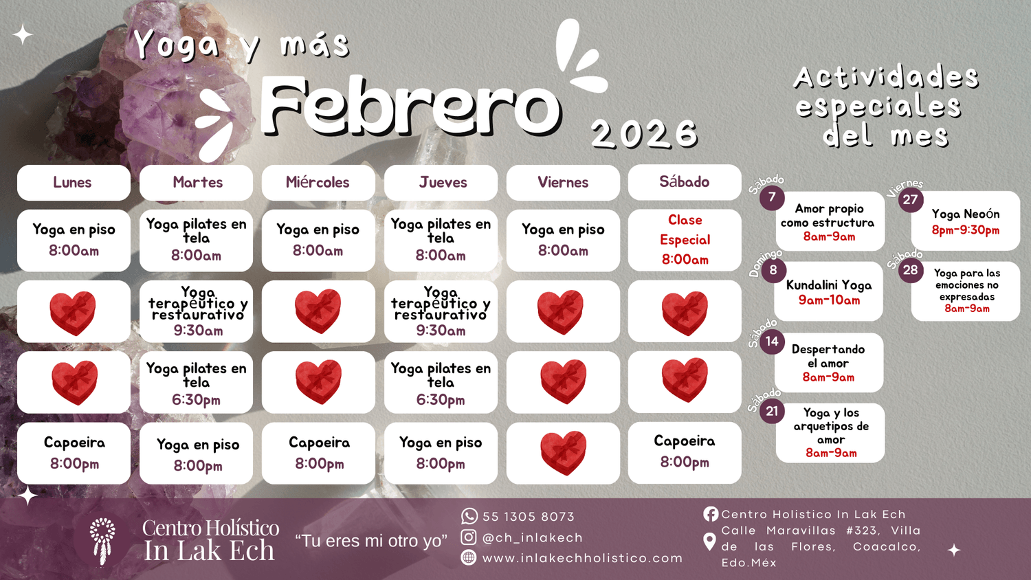 Cada semana es una temática diferente que nutre aún más nuestra experiencia en la práctica del yoga.